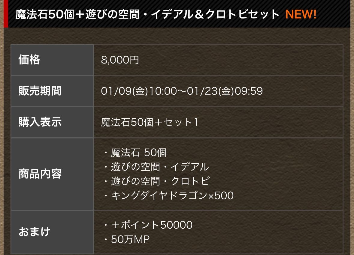 魔法石50個+遊びの空間・イデアル&クロトビセット8000円!
