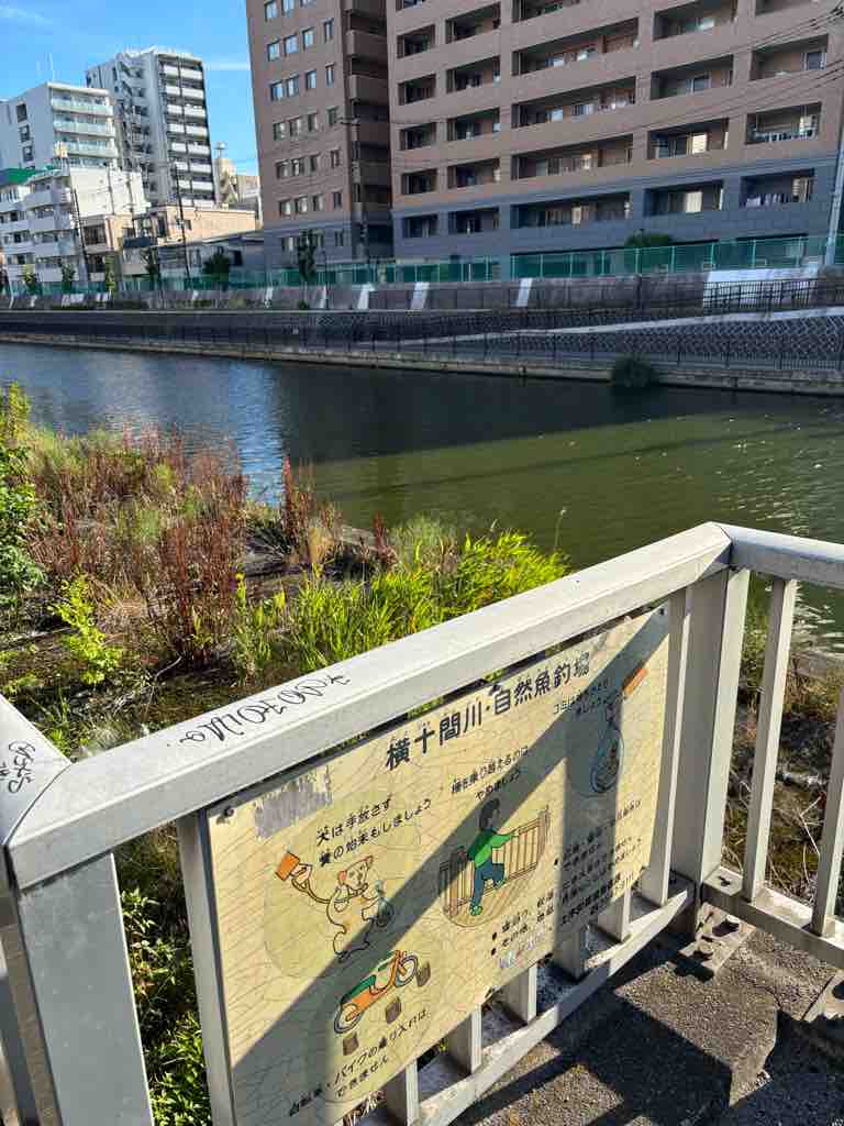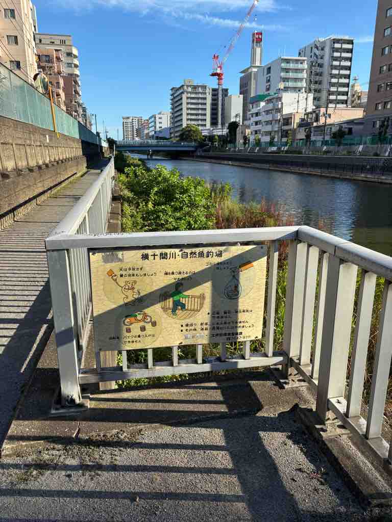 昔よくここでハゼを釣ってました。結構釣れて、家で天ぷらにして、実に美味しかった…そんな近所の魚釣り場です。護岸工事が行われる前は、結構な自然が生き生きとしていて、何度かカワセミも来てました。白鷺やカモなんかも飛来してました。そして、写真のように護岸工事が完了。見事に自然は破壊されました。当時の魚釣り場の看板が、新しくできた護岸のフェンスに掲示されていました。 しかし、フェンスでガチガチに囲いがされていて、川面まで、5メートルはあります。