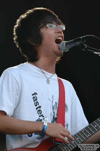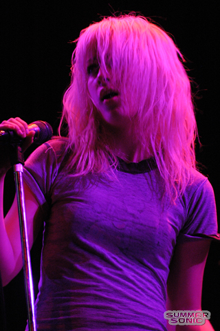 実は雑誌で見かけてて気になってたバンド。客の入りもなかなかよかった。そして演奏開始ー。かなりぶっとんだ系なのね。うーん。どうだろなぁ。自分的にはCD買うほどではないけど、まぁ普通にいいかな?テンション上げたいときに聞きたい感じ。ボーカルの女の子がちょーはじけてた。頭フリフリ。でもすごいかわいいんだよね。あ、そうそう。ベースかな?アフロの人がいるんだけど、アイデン&ティティの峯田扮する中島にそっくりだった笑。動きがね。峯田じゃなくて、中島だから。ここ要注意 笑!
