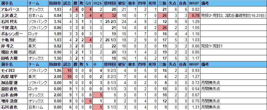 アルバース 4試合 28回 1.93 4勝0敗 奪三振21 完投0 (残1試合:中日)