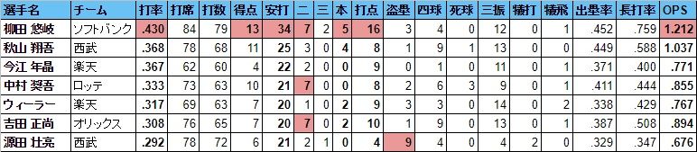 投手と同じくまだ変動の余地はあるが柳田が最有力