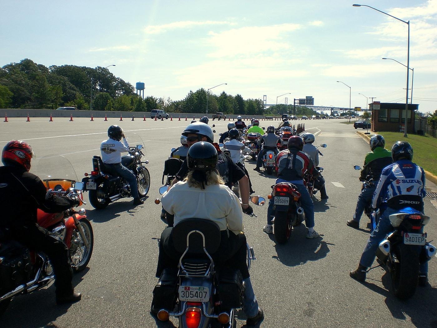 A地点のちょっと南が自宅。高速495号線をしばらく走り、50号線で東に進みます。チェサピーク湾の手前、全行程の丁度真ん中あたりが集合場所のアナポリスです。ここからは25台で、再び50号線にのり、一気にB地点のRock Hallまで向かいます。