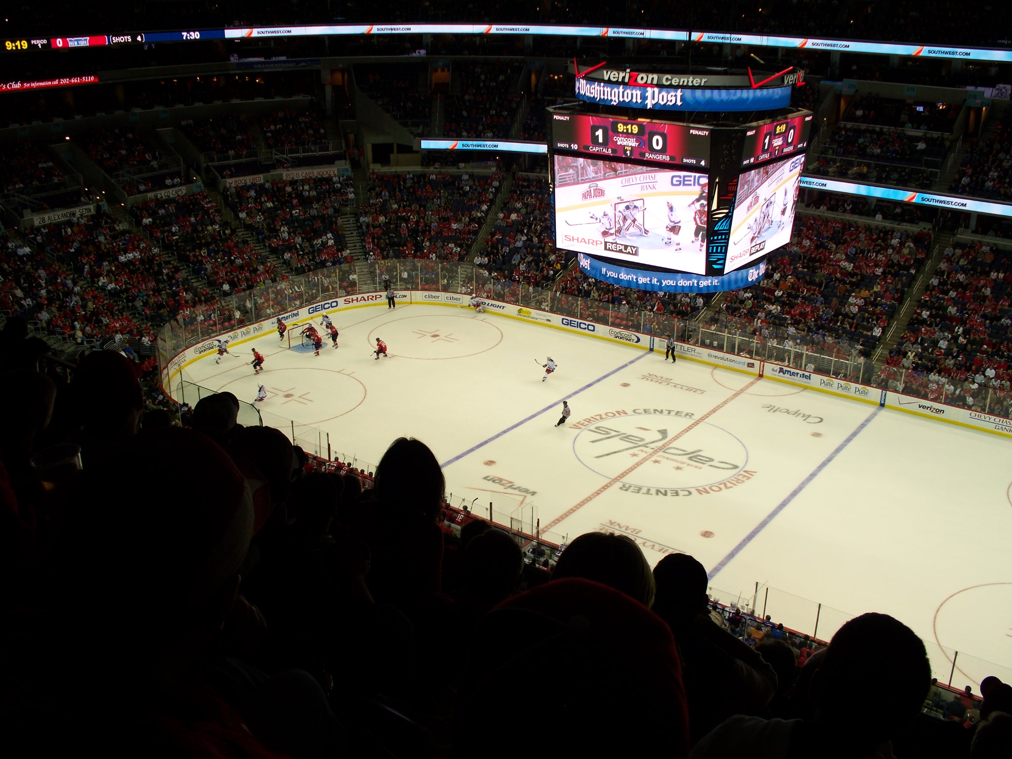 Capsファンの皆さん、NYチームには何かとライバル意識があるんでしょうか?応援(貶し)合戦に熱がこもっていました。阪神タイガースファン、顔負けの熱さです。試合が進むとビールも進んだのか、ヒートアップした後部座席でファン同士の口喧嘩が2−3回。最初はセキュリティーの静止が効果的だったんですが...最後には当事者2人が退場になりましたね。大学生くらいの歳の女の子2人。元々、会場のファン99.9999%がCaps応援なんですが、連れ出されたのがNYファンだったので、周りは大声援と拍手で送り出していました。そんな様子を、にやにやしながらビデオで撮る日本人1名。 イッヒッヒ
