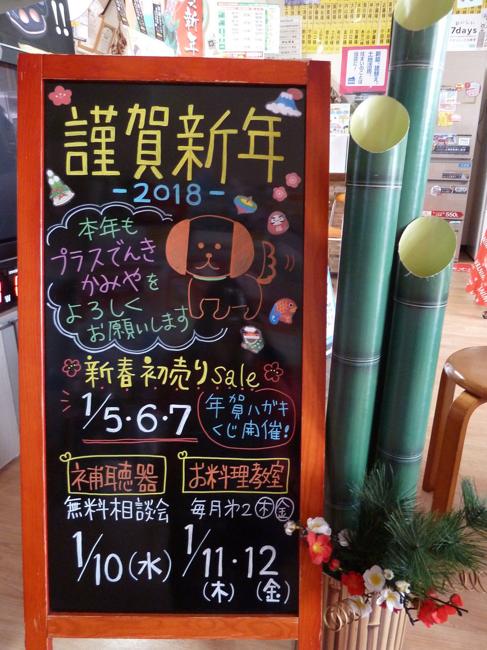 新年あけましておめでとうございます本年も皆様の暮らしのお役に立てますよう社員一同ますます頑張ってまいりますどうぞプラスでんきかみやを宜しくお願いいたします1/5・6・7 新春初売りセール 開催!!年賀ハガキ抽選会 実施!ご自宅に届いた年賀はがきをお持ちください!当店提示の番号が当たったら景品贈呈いたします甘酒のふるまいもありますよ~皆様のご来店お待ちしております