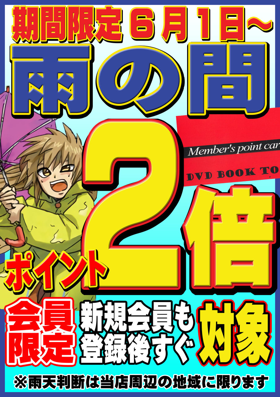 只今当店では雨の間ポイント2倍キャンペーン実施中!!