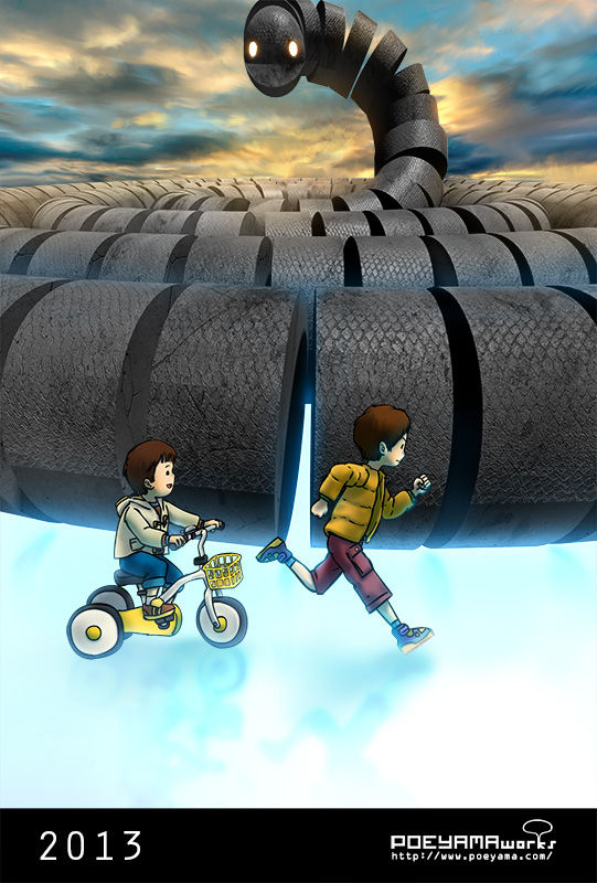 トピックとしては、液タブ(Cintiq 13HD)を導入したので去年までとタッチが変わったということでしょうか。手描き感を活かしてガシガシ線を入れていくにはとてもいいツールです。絵を描くのが楽しくなります。あとは大きな形をとるのが容易になったことで多少描画速度もアップしたなどメリットの反面、複数画面があると最適な配置をソフトごとに考えたり視線移動など煩雑なことが増え、姿勢に気をつけないと肩凝りがひどくなるなどデメリットもあります。