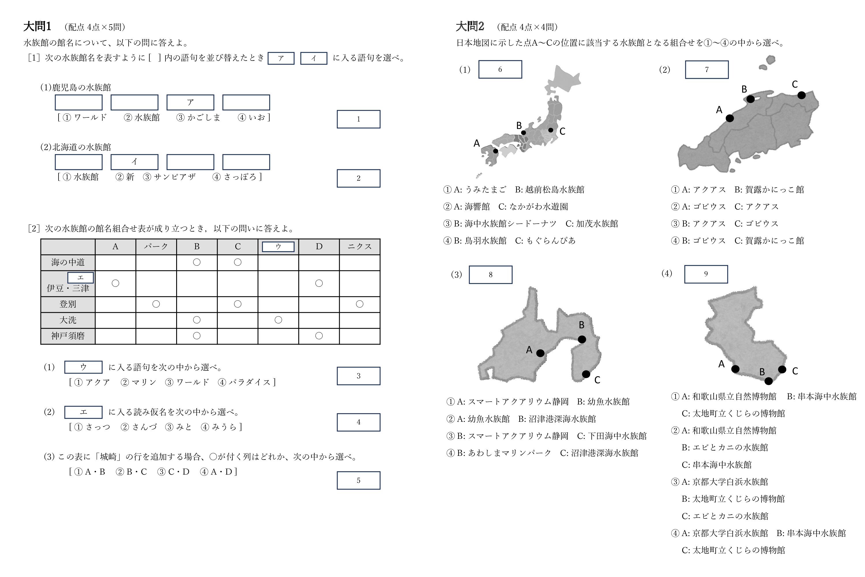 回答形式は4択から選ぶ形で、生き物の名前を答えたり、特徴を答えたりする問題が5問セットとなっており、出題ジャンル毎・難易度別に用意されています。