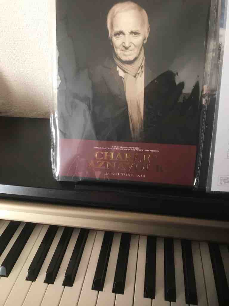 自宅の練習用ピアノの譜面立てにはいつもアズナブール