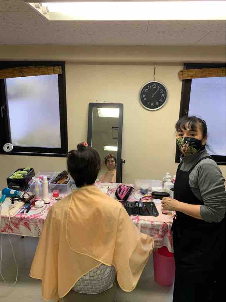 メイクさん、お一人で7人分をテキパキと
