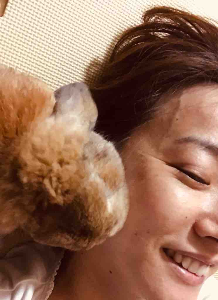 寝っ転がるとカエデが顔中ペロンペロン〜