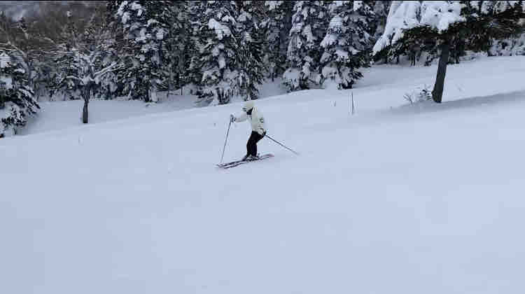 レンタルした最近流行りのスキー板は回しづらいしで、