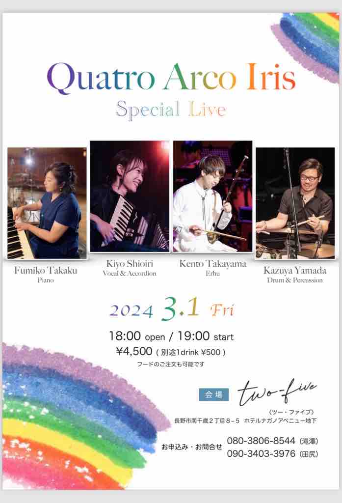 3月1日久々にこの4人で演奏します。
