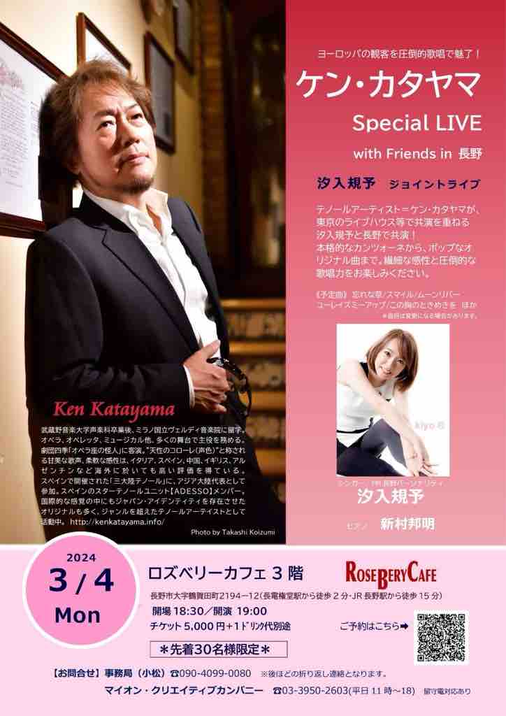 世界的テノール歌手、ケン カタヤマさんの長野公演があります!