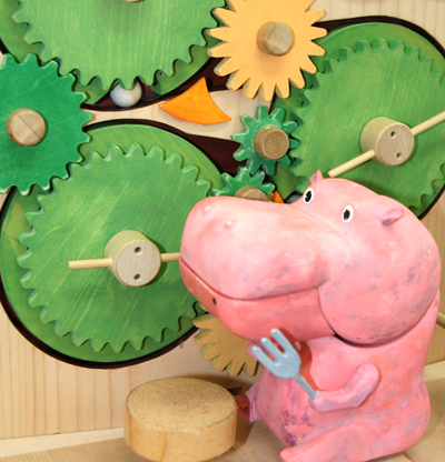 ハンドルを回すと上から落ちてくるお団子(ボール)をパク