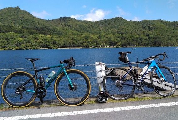 澄んだ湖面に澄んだ青空、そして自転車もブルー