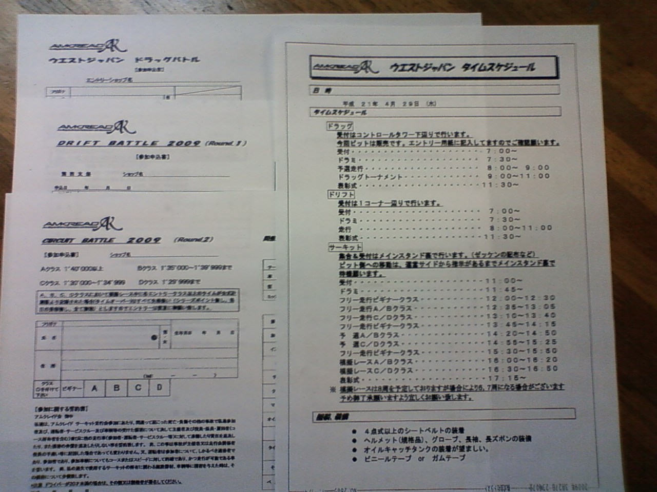今月29日にアムク走行会があるんですがエントリー用紙が来てるので早めにエントリーお願いしますねー