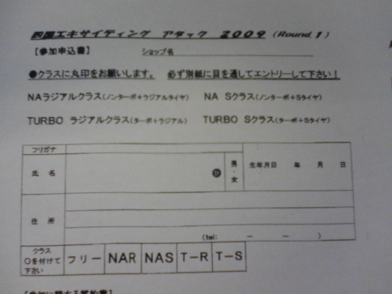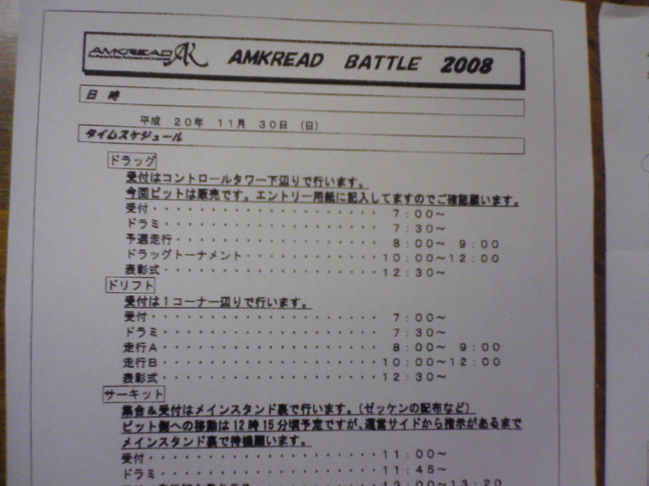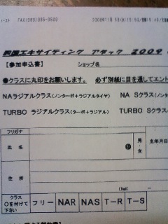 今月29日にアムク走行会があるんですがエントリー用紙が来てるので早めにエントリーお願いしますねー
