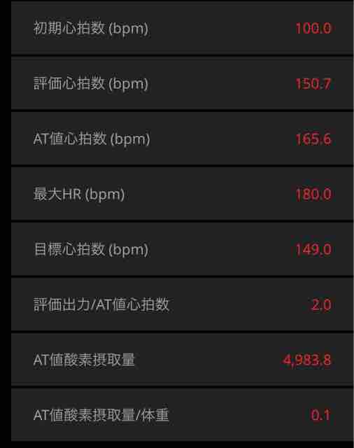 ・フェーズ2→1分毎に10wずつ負荷が上昇。負荷の上昇は平均心拍数が目標心拍数と同等以上になるまで続く。