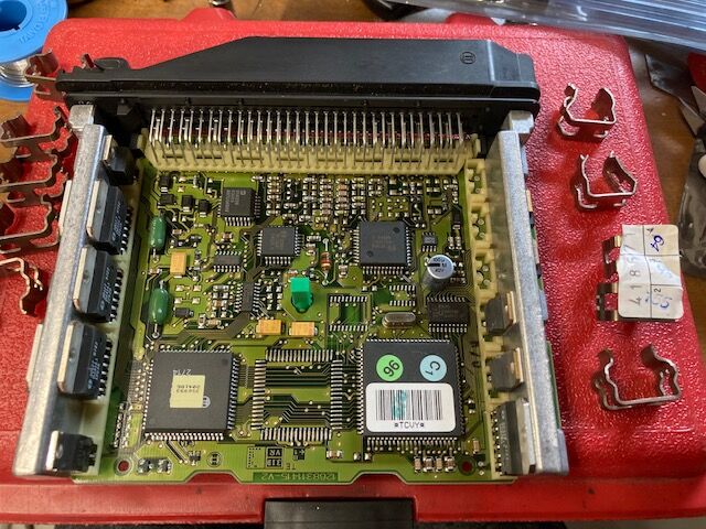 ECUのリフレッシュ。。。イグナイターもこの中に組み込まれているのです。調子悪い可能性が。。。以前にも同様の症状で修理したことがあった。。。同じような可能性も。。。これで直ってくれたらいいけどね。。。半導体部品は揃えてある。。。