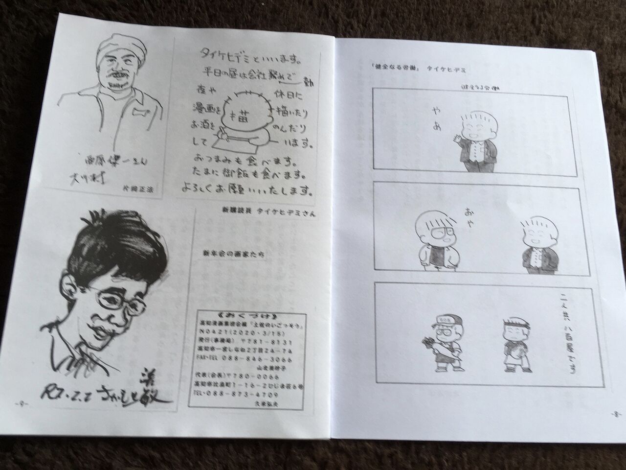 高知漫画集団という方々が発行している「月刊土佐のいごっそう」に載せていただきました/何処に載っても浮いてる感じがするのは気のせいでしょうか/タイトルが変なのは何故かというと勝手に描いた後で今回はタイトルを「け」で始めよとの記述に気付いたからです/花粉症の薬があと三日分しかありません