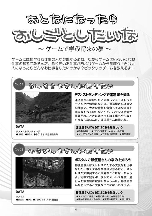 ゲームで学ぶ将来の夢。将来、運送屋になりたければデズ・ストランディングで勉強しろみたいに将来なりたい職業のゲームを紹介 →サンプル