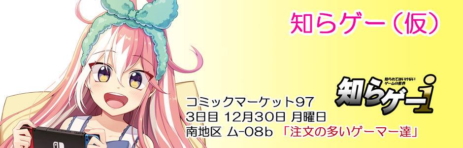 コミックマーケット97 3日目 12月31日(日) 南地区 ム-08a 注文の多いゲーマーたちで参加します。
