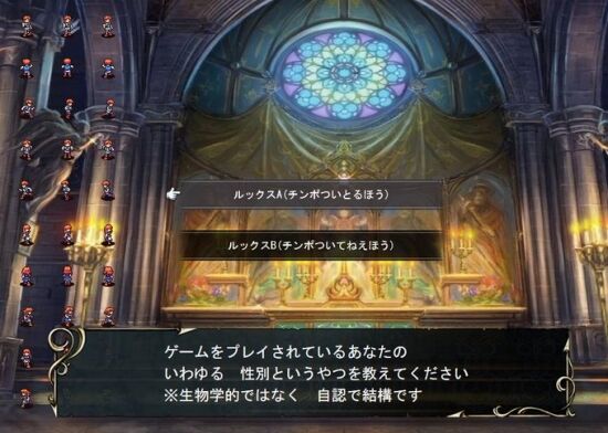 主人公の性別を決めるときにポリコレ配慮の行き届いた選択肢 2025年12月16日 03:00 選択肢 持辺高志@新作SRPG8/20発売 @highmotivation8ポリコレ配慮の行き届いたゲーム December 7, 2025 ラズリィ @RasryRubusチンポA(チンポついてるほう)チンポB(チンポついてないほう)に見えて朝っぱらから疲れてるなあと思いました。December 7, 2025 かえる58 @ONSEN06これからさらに配慮するようになったらルックスA(チンポあり)ルックスA(チンポなし)ルックスB(チンポあり)ルックスB(チンポなし)てしないとあかんのかなDecember 8, 2025 黒子のかまくら @kamakurakurokoやっつけ感すきDecember 7, 2025 ドニエプル山田 @doniepuruyamada心のチンポの有無を問われるゲームwDecember 8, 2025 寅さん @RWRy72CfwwXzLNgどう考えても18禁ゲームの考えだwタイトルはなんだろう?December 8, 2025 適当太郎 @mnwCwsR8gLrHRzI珍ポリティカルコレクトネスDecember 7, 2025 大和 @yamato_halまあ男が女主人公選ぶのはよくあることだが…December 8, 2025 孤独死 @kodokusi0929待ってくれ、ルックスBにチンポ付いてるのが1番興奮しないか?December 8, 2025 きいろいおはだ @yellowskin763公衆浴場もこの区分でいいと思うチンポ側とノーチンポ側December 7, 2025チンポついとるほうを選ぶわ。 おすすめ < 前の記事次の記事 > コメント コメント一覧 (11) 1. 名無しさん 2025年12月16日 03:03 >チンポついとるほうを選ぶわ。 でしょうね。 0 qmanews がしました 2. 名無しさん 2025年12月16日 03:16 最近は装備や服が共有な事多くて簡単に女装が出来るからな 女選ぶメリットも減ってる ポケモンZAとか可愛い系統のアイテム多いから意識して男らしい格好選ばなきゃ普通に女装男子や男の娘になるし… 0 qmanews がしました 3. 名無しさん 2025年12月16日 03:31 じゃあふたなり 0 qmanews がしました 4. 名無しさん 2025年12月16日 04:25 ルックスBでチンポついてるほうは無いのか?なぁ? 0 qmanews がしました 5. 名無しさん 2025年12月16日 05:33 竿はあるが玉は無い性別は? 0 qmanews がしました 7. 名無しさん 2025年12月16日 07:32 >>5 チンポついとるほう 0 qmanews がしました 6. 名無しさん 2025年12月16日 06:59 昔々Sims4がポリがコレってねえとクレーム付けられて実装した 男っぽい見た目 or 女っぽい見た目 x 座って小便する or しないで4パターン 0 qmanews がしました 8. 名無しさん 2025年12月16日 08:55 ・チンコが付いている(ケツイキしない) ・チンコが付いている(ケツイキする) ・チンコが付いていない(ケツイキしない) ・チンコが付いていない(ケツイキする) 人間ってこの4種類に分類される 0 qmanews がしました 9. 名無しさん 2025年12月16日 09:26 チンポにゃ!! 0 qmanews がしました 10. 名無しさん 2025年12月16日 10:55 >>9 ちがうだr・・・ほんとだチンポだ! 0 qmanews がしました 11. 名無しさん 2025年12月16日 13:05 望んだ世界やね 0 qmanews がしました コメントフォーム 名前 コメント 記事の評価 リセット リセット 顔 星 情報を記憶 コメントを投稿する
