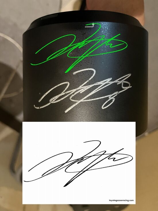 サインの上下が逆なので分かりづらいですが、レーシングドライバーのサインかと思います!7番はフェリックスローゼンクビスト選手、8番は大嶋和也選手のものかと思われます!売るほど困っていたのでしょう