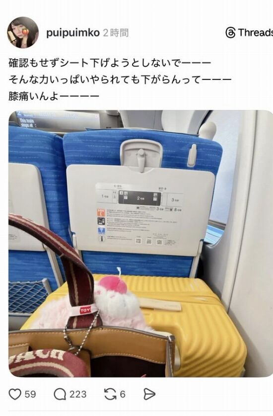 December 10, 2025前の席の人がリクライニングも使えないサイズの荷物あるなら特大荷物スペース予約しろ