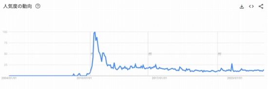 例えば、今はチェンソーマンにも登場する「ダブルピース」。Googleトレンドで調べると、みさくらなんこつが『信じて送り出したフタナリ彼女が農家の叔父さんの変態調教にドハマリしてアヘ顔ピースビデオレターを送ってくるなんて...』を発表した2010年4月以降と以前では決定的に異なる