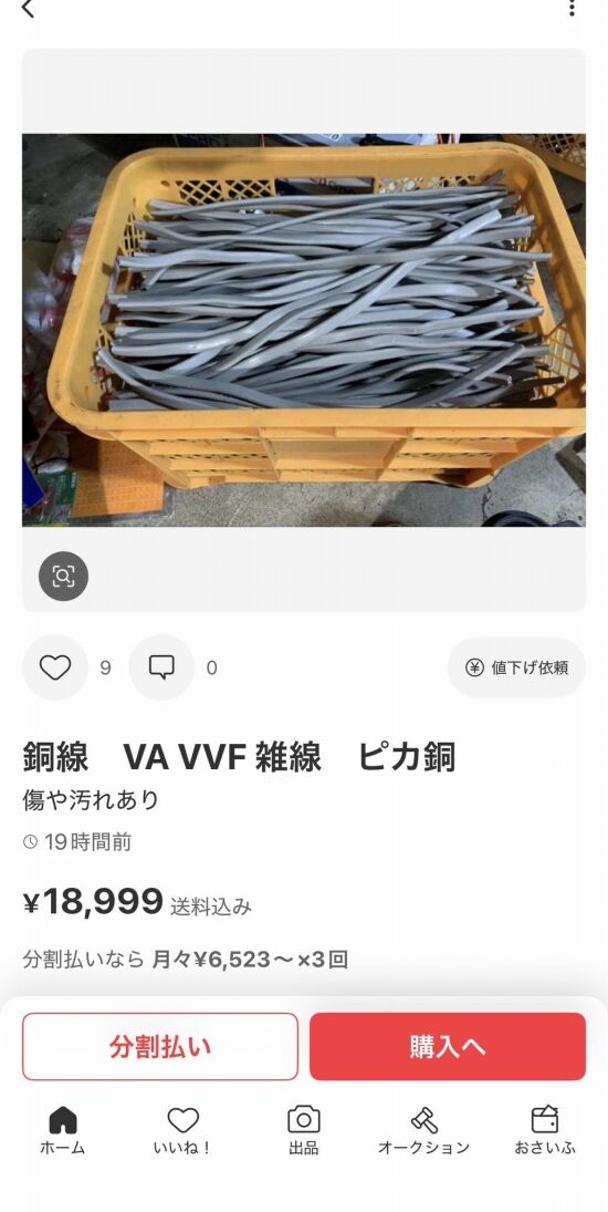 これで盗品を疑うなって方が無理あるよねぇ。長いままの方が使い道があるのに、わざわざ短く切って発送するのは証拠隠滅かな、と。盗品じゃないなら、いちいち切る手間を掛けるより多少遠くても買い取り業者に出した方が精神的にも肉体的にも楽でしょ。