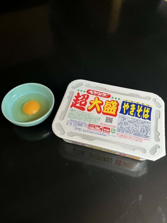 ②卵黄に含まれる「レシチン」が、ペヤングの強い油分とソースを乳化させます。 尖った塩味カドがタンパク質でマスキングされ、舌触りが劇的に滑らかになる。
