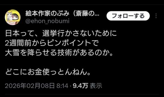 選挙当日に大雪が降ったせいで、