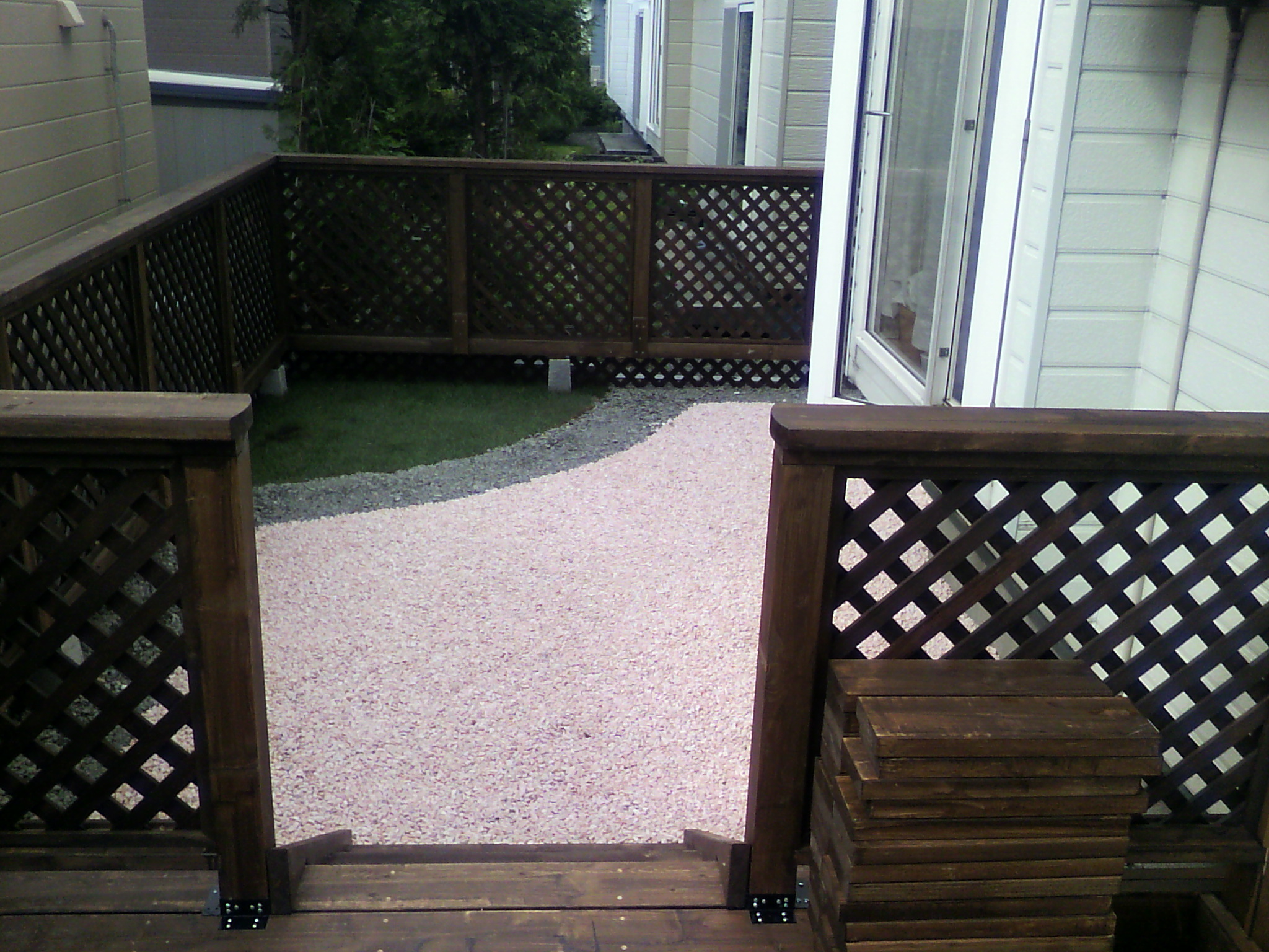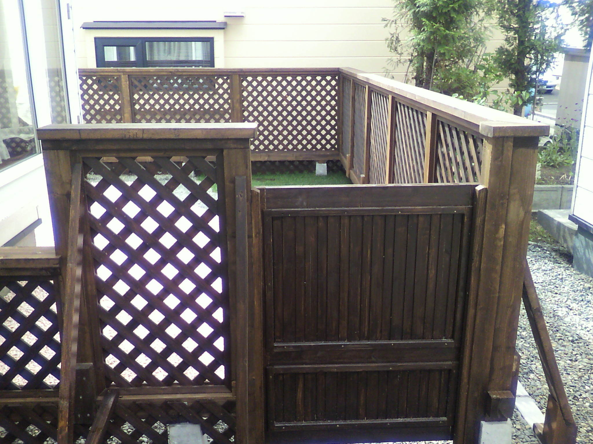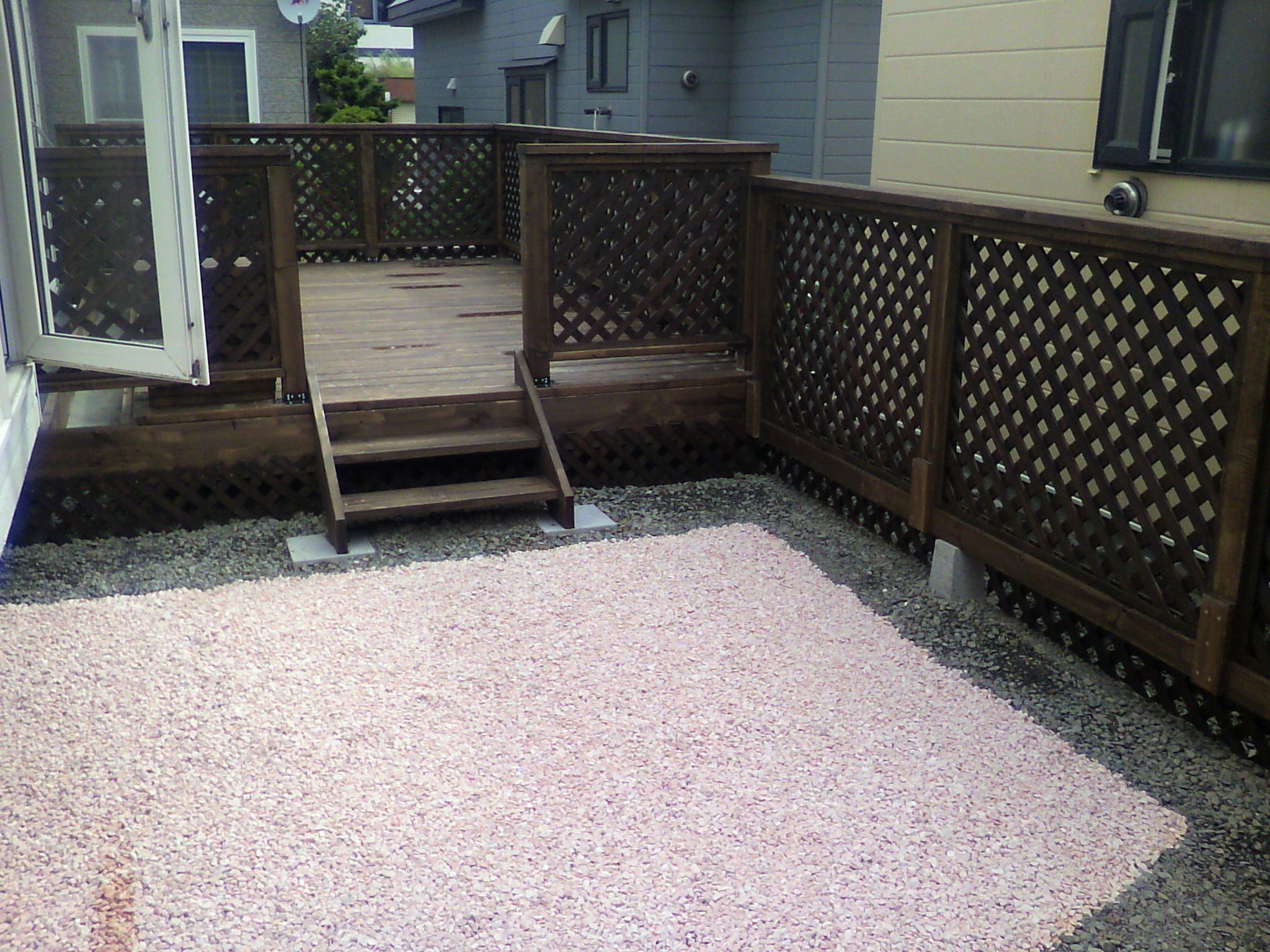 奥さんの超〜希望であった我が家の庭にウッドデッキ&小さいランができました