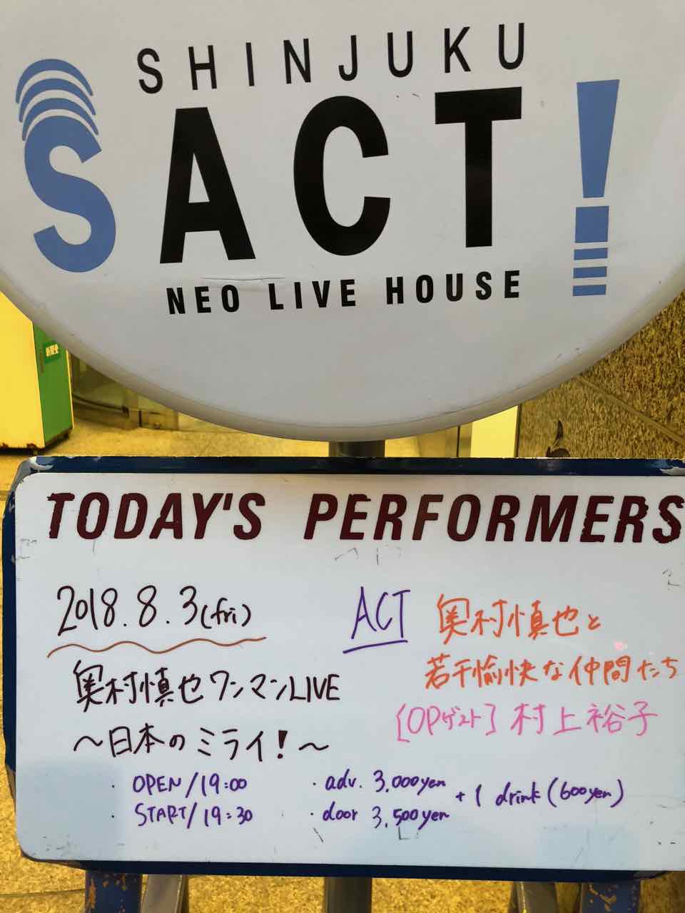 こんなに暑い中、各地でいろんなイベントも行われている中新宿SACT!はほぼ満席ありがとう〜〜!