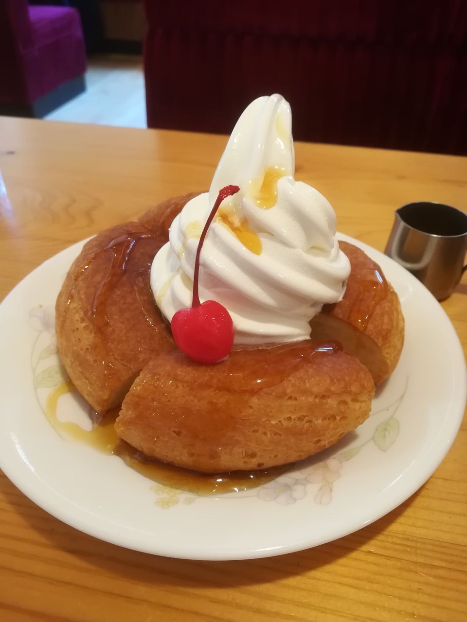 デニッシュにシロップとアイスがしみて