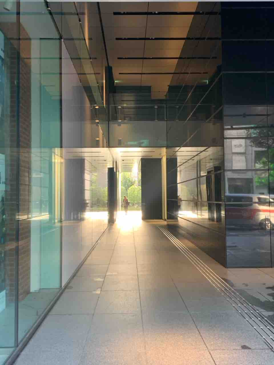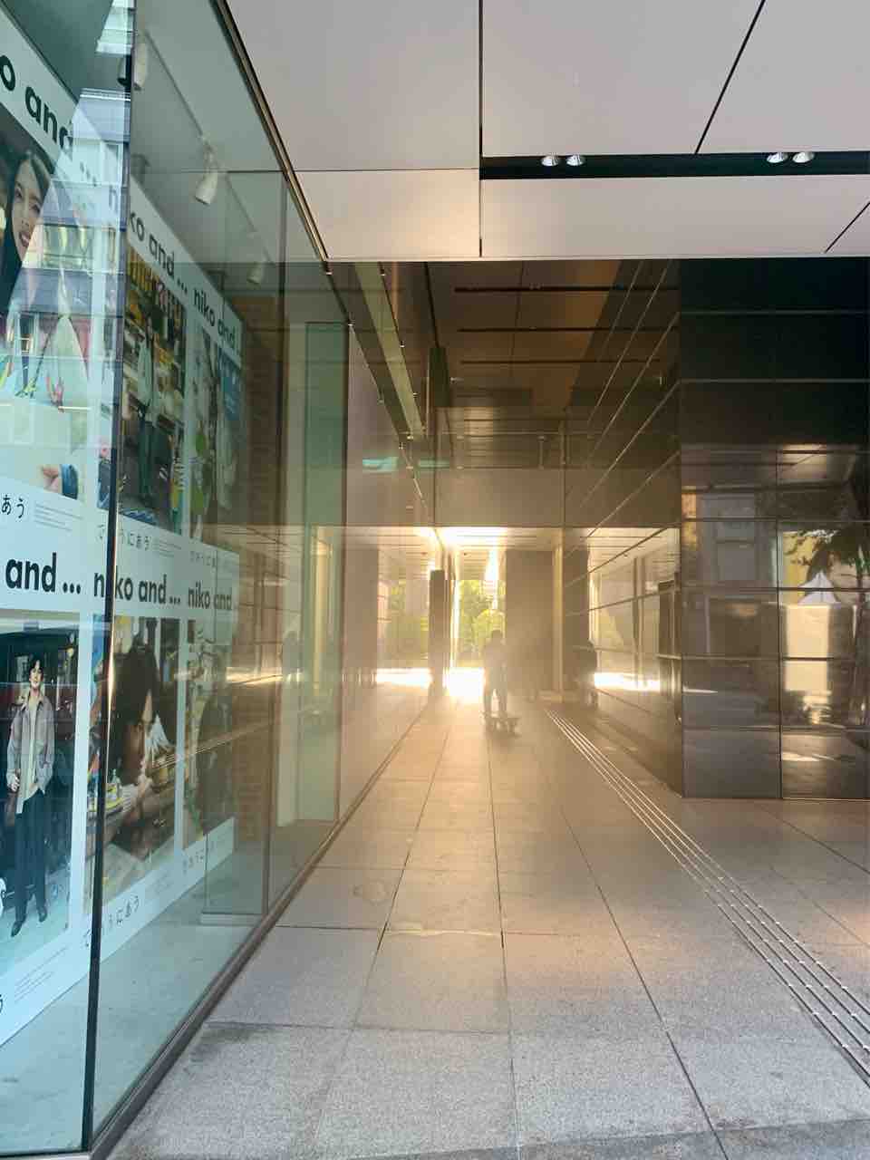ビルの隙間からの朝日もね