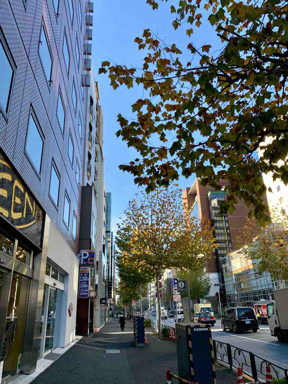 プラタナスに朝日が当たって綺麗