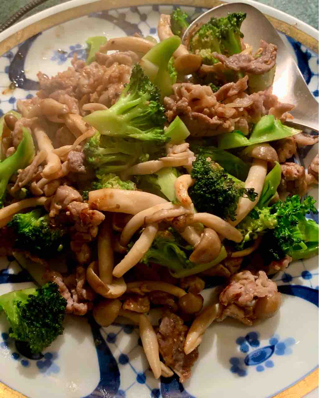 豚こまとしめじとブロッコリーの炒め物