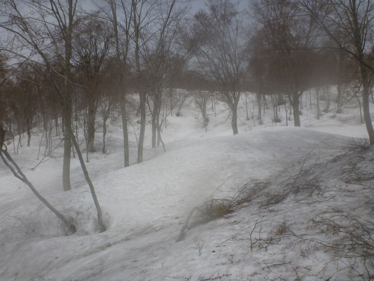 下手な私が、ウロコ板+柔らかいブーツでロクに滑れるわけがありません・・・それでも、湯峠まで10分足らずで滑り降りました。