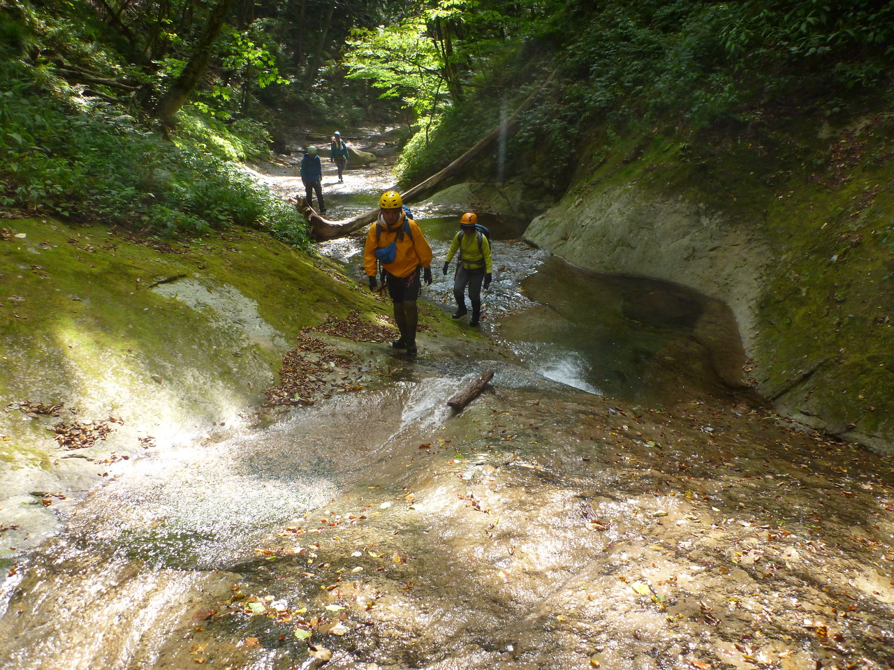 でも、綺麗なナメ床で木々から洩れ射し込んでくる日差しと相まって癒しの沢旅が楽しめる。