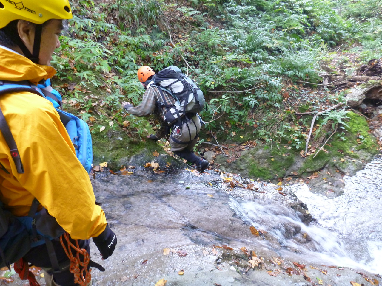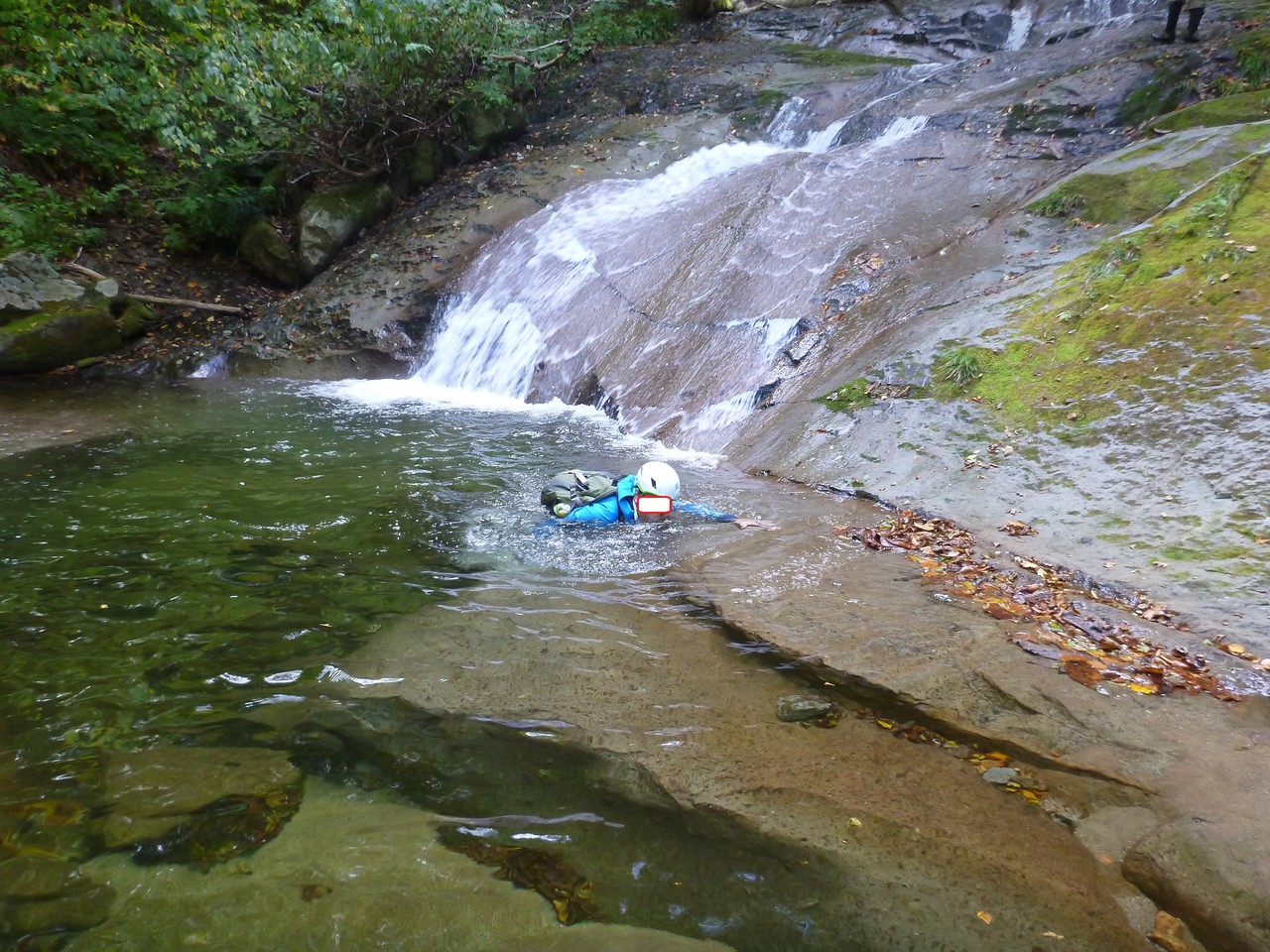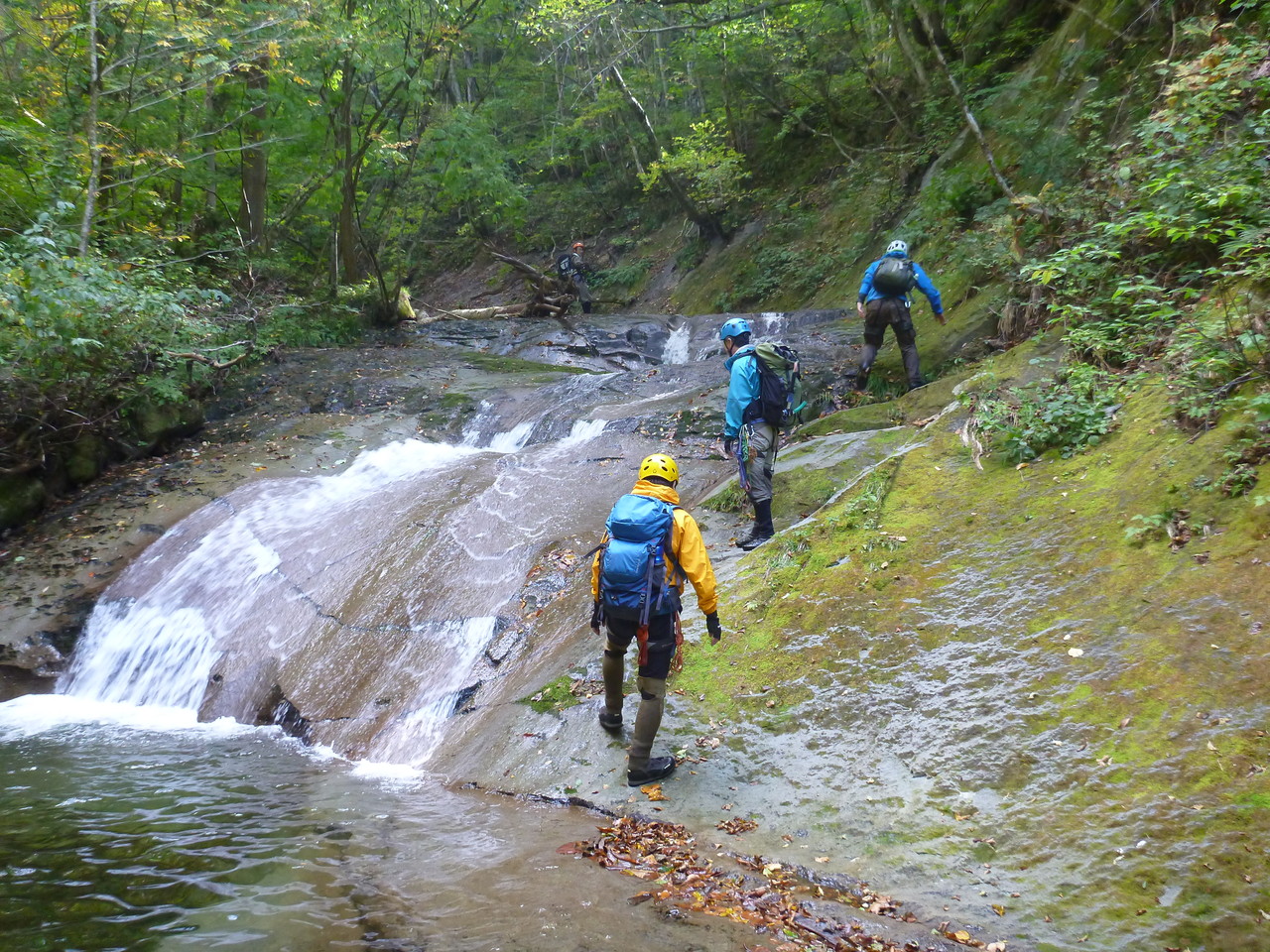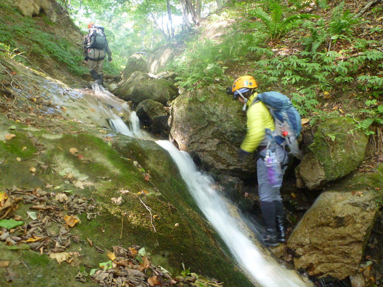 吐道沢の出合で少し大きめのナメ滝にぶつかって、ここで下降終了。