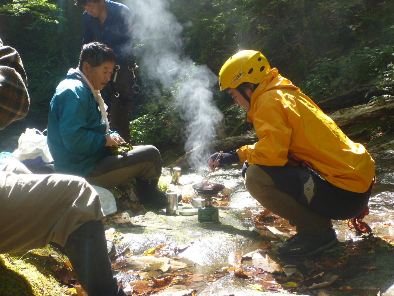 地神沢とクロノ沢の二俣まで戻ったところで昼食。