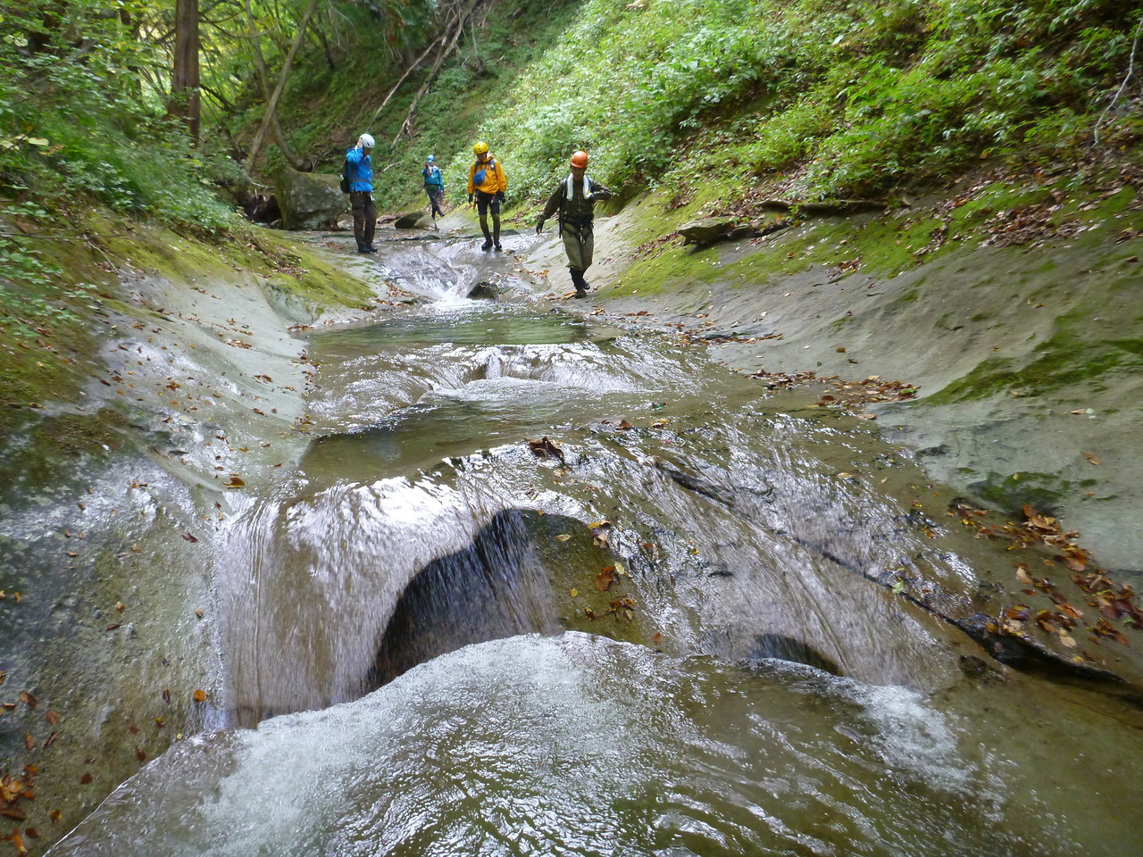 舗装路のようなナメとたまに小滝を下降する。