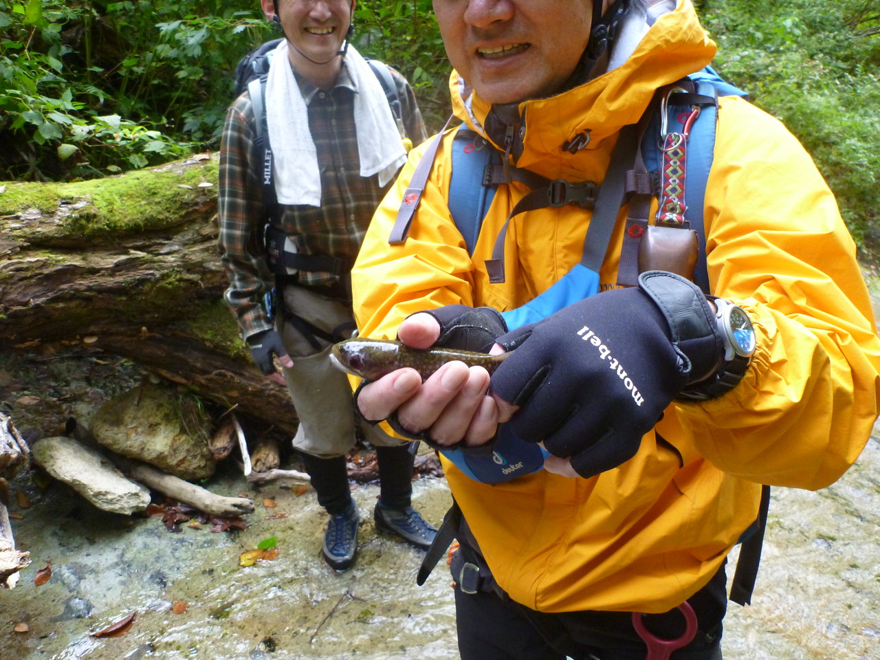 昼食を終えたら、クロノ沢を遡上・・・その名の通り地神沢よりも黒コケが多くて少しヌメリが強い。