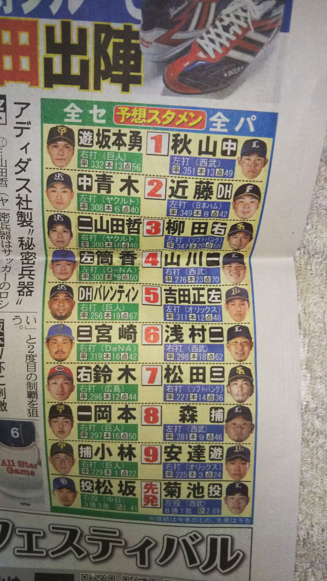 2018年07月13日 今日のスワ記事 村上くんです😊 昨日、中日の選手がMVPだったんでトーチュウでも良いかな?って思ったんだけどトーチュウは松坂だった。 MVPより松坂なんか? 今日からの球宴ネタは山田くん スタメンにヤクルト3人 「ヤクルトスワローズ」カテゴリの最新記事 タグ :ヤクルト < 前の記事次の記事 > コメント コメントフォーム 名前 メール URL コメント 評価する リセット リセット 顔 星 投稿する 情報を記憶