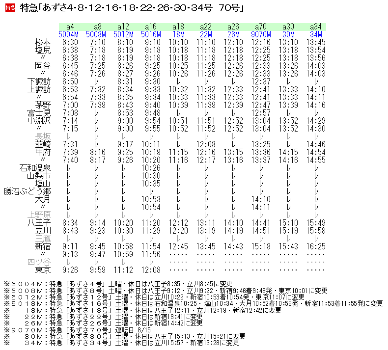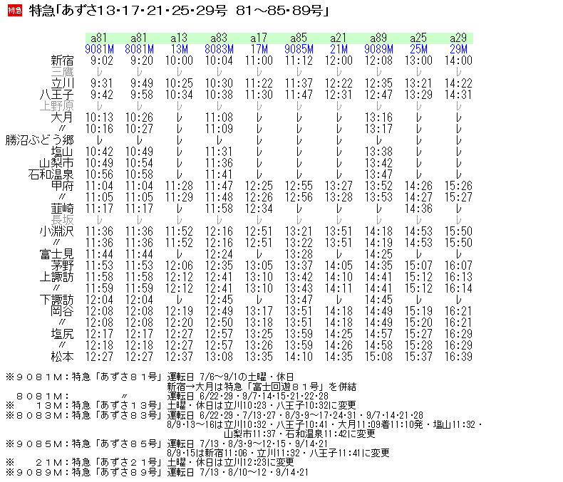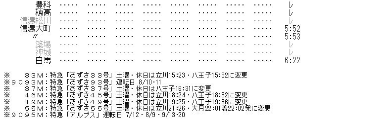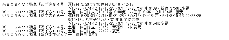 運転日不明8月12〜15日及び16日〜20日は豊岡止の記載