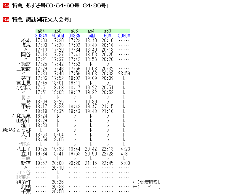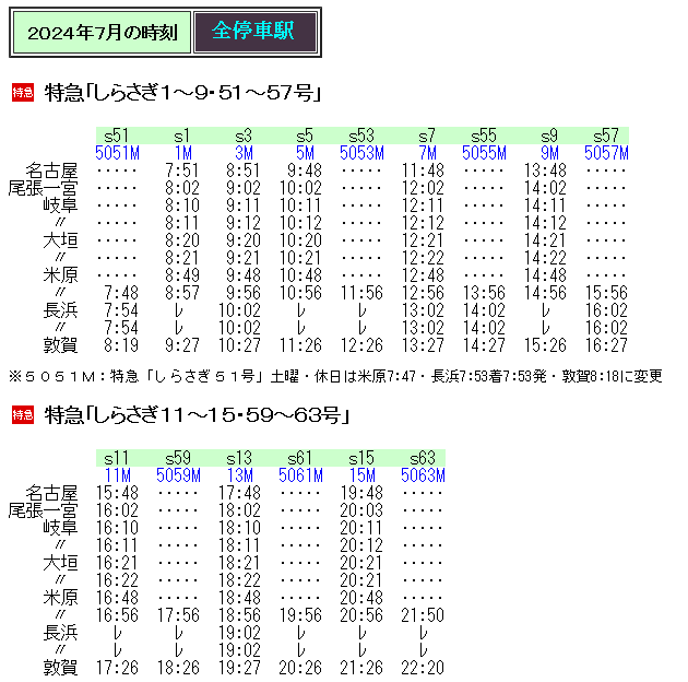 また、1960年以前は臨時列車の折込付録が無いものがあり、不明なシーズンがあるとの事。