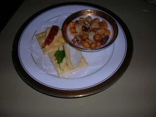 おつまみは、チーズ&クラッカーとナッツの盛り合わせである。