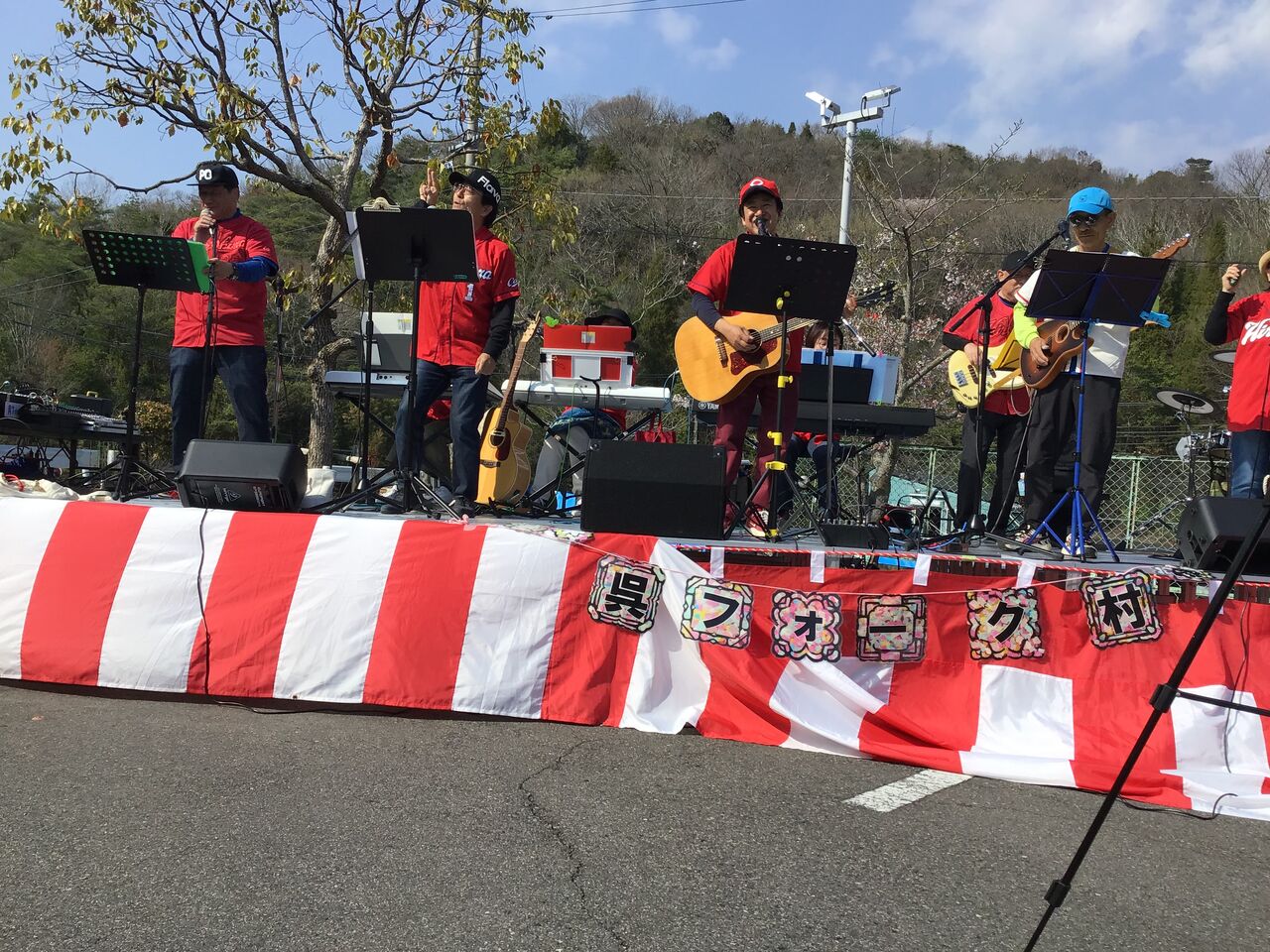 フォーク村様の演奏会を聴きながら外で饅頭を食べられながらお花見をしました。